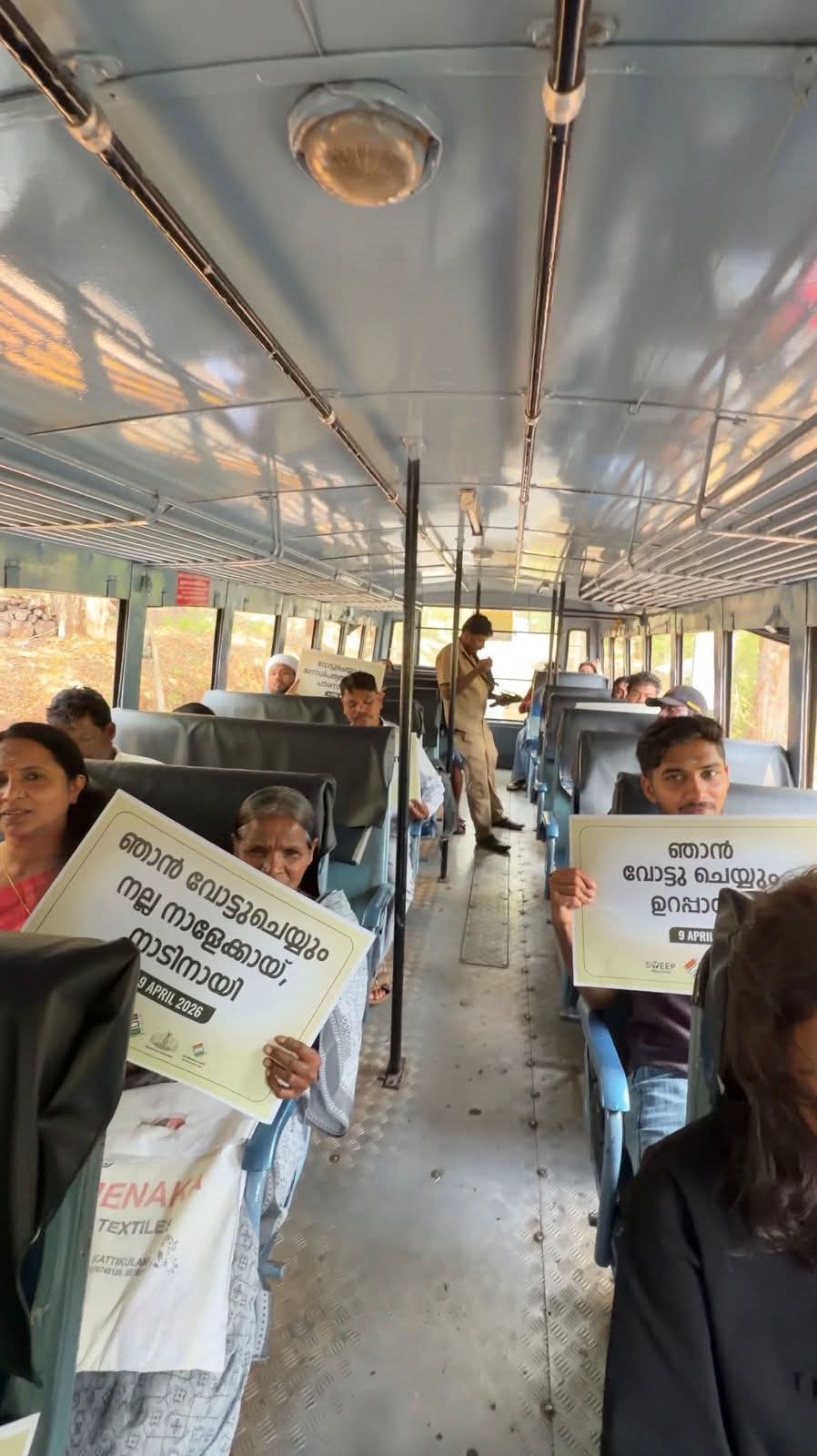മാനന്തവാടി മണ്ഡലത്തിലെ സ്വീപ് അംഗങ്ങള് കെ.എസ്.ആര്.ടി.സി ബസില് സഞ്ചരിച്ച് നടത്തിയ തെരഞ്ഞെടുപ്പ് ബോധവത്കരണ പ്രവര്ത്തനം ശ്രദ്ധേയമായി. ബാവലി -മാനന്തവാടി റൂട്ടില് സര്വീസ് നടത്തുന്ന ബസുകളിലാണ് ബോധവത്കരണ പരിപാടി സംഘടിപ്പിച്ചത്. യാത്രയ്ക്കിടെ ബസ്സിലെ ഓരോ യാത്രക്കാരോടും നേരിട്ട് സംവദിച്ച് വോട്ടവകാശത്തിന്റെ പ്രാധാന്യവും പൗരന്റെയും ഉത്തരവാദിത്വവും സ്വീപ് അംഗങ്ങള് വിശദീകരിച്ചു. ഓരോ വോട്ടും വിലപ്പെട്ടതാണെന്ന സന്ദേശം കൈമാറിയതിനൊപ്പം ഏപ്രില് ഒന്പതിന് നടക്കുന്ന വോട്ടെടുപ്പില് എല്ലാവരും പങ്കെടുക്കണമെന്നും വോട്ടര്മാരോട് അഭ്യര്ത്ഥിച്ചു.